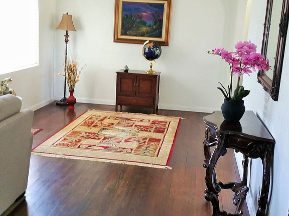 Charming 2 bedroom, 1 bathroom home for Sale near Cedar & Clinton. The home is gorgeous inside with beautiful dark hardwood flooring and an upgraded kitchen with upgraded backsplash and a gas stove. The home is in wonderful condition and is very cozy inside. The backyard is large with a large covered patio. The home includes a swamp cooler and has fans throughout. No pets. Available now!