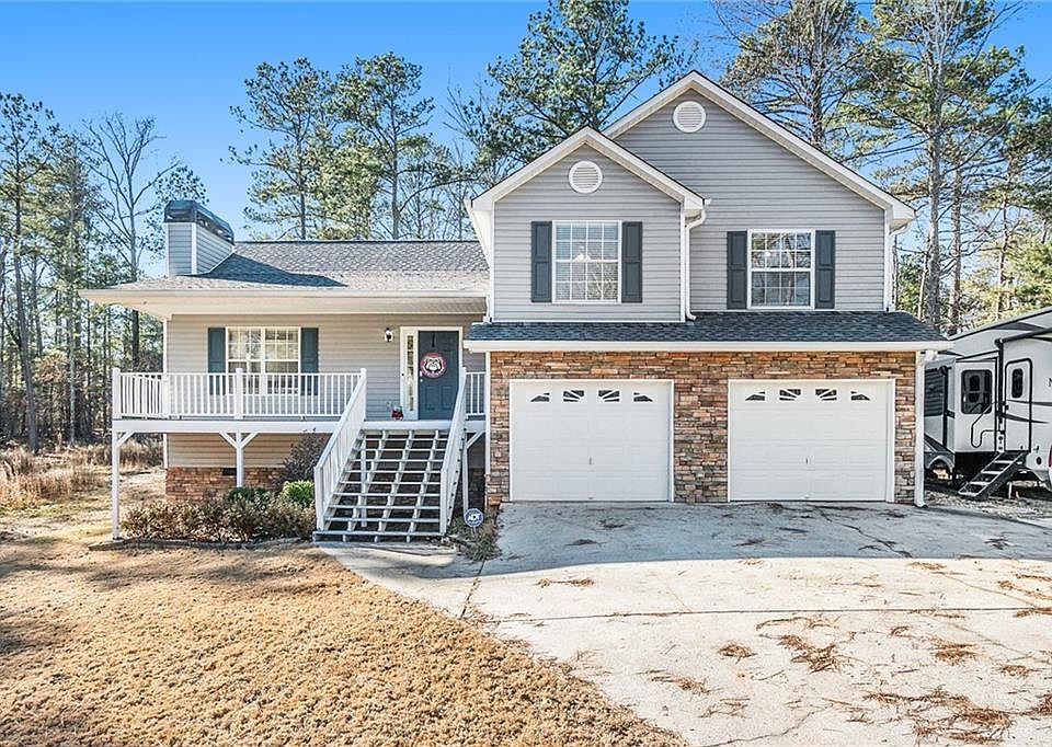 Welcome home to this beautiful 4-bedroom 2 bath home sitting on a double lot inside Fairfield Plantation. The rocking chair front porch is perfect for your morning coffee. As you enter the home, you will notice the breathtaking vaulted ceiling that gives the main level of the home a spacious feel. The lush carpet and hardwood floors provide a warm rich feel. The living area with a gas log fireplace is a perfect place to relax during the cold Georgia weather. The large kitchen has been recently renovated with Stainless Steel appliances, granite countertops, and updated cabinets. The kitchen has plenty of space for an island and opens to the dining room making mealtime and gatherings a breeze. Upstairs you will find three bedrooms and two baths including the owner's suite. The ensuite has also been updated and features a separate tub & shower. Downstairs you will find a finished room that can serve as a 4th bedroom and is large enough for a game room or office. Out back you will find a huge back deck featuring a bench seat. This home is a must-see! Bring your buyers and let them call this home today!