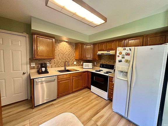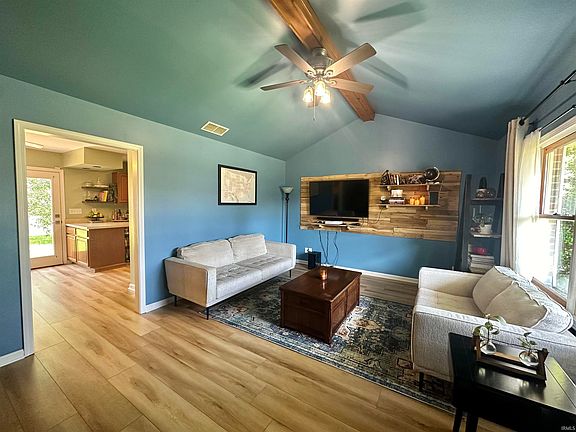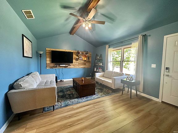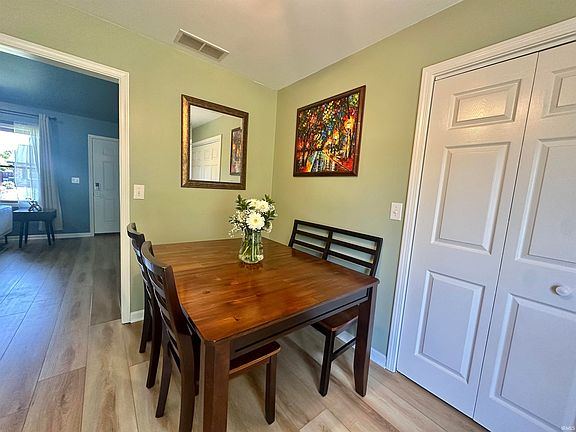 Start showing date: 6/6 Welcome to your dream home in the highly sought-after Valley Downs subdivision on Evansville's Northeast side! This charming brick ranch, ideally situated on a spacious corner lot, offers an array of desirable features for comfortable living. Step inside to discover a beautifully updated interior with new luxury vinyl flooring installed in 2022. The great room impresses with its cathedral ceiling, creating an open and airy atmosphere perfect for both relaxation and entertaining. The dining space seamlessly connects to the great room and the updated kitchen, which boasts of oak cabinets and double patio doors that lead to a delightful outdoor space, perfect for gatherings. The home includes three spacious bedrooms and two full baths. The master suite is a true retreat, featuring a private, recently updated bathroom with a tall vanity, modern glass doors for the shower, and new hardware. Additional highlights of this property include a 2.5-car side load garage (24x27), providing extra space for parking and storage. The convenient location near Stockwell and Good Shepherd Schools makes it ideal for families.(2 Lamp sconces in hallway EXCLUDED from sale)