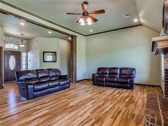 Moving special!! Priced well below market value! Carl Albert Schools! The Pictures do not do this home justice! Must see in person, to appreciate! With 4 bedrooms, 3.5 baths, a study AND huge bonus room (could be used as 5th bedroom with the full bath!), The NEWLY UPDATED kitchen offers new LG Appliances, granite counter tops, center island & pantry. Brand new luxury vinyl plank flooring & silk strand carpet installed!! Solid surface counter tops throughout. The attic offers floored space for your additional storage! In the OVERSIZED 3 CAR GARAGE, you'll have an 8 person storm shelter, as well as more storage! Sit on your covered patio or front porch & watch the deer stroll through! This beautiful home sits on a cul-de-sac, backing up to a tree line, giving you the luxury of country living but close to Tinker AFB & all the great shopping & restaurants, just up the road! Don't miss your chance to live on EASY STREET! ALL WITH NO HOA!