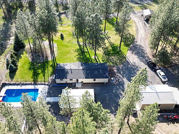 Immaculately cared for 5-Acre Estate with Pool, Garage, Shop, and ADU. This meticulously maintained 1809 sq. ft. home on 5 acres blends comfort, space, and tranquility. The property features a spacious 3-bed, 2-bath main home with 2 car garage, a 480 sq. ft. ADU with full kitchen and 3/4 bath, a 24’ x 36’ heated shop, and a 20' x 40' x 9' deep inground pool with diving board and thrilling sliding tube—perfect for both relaxation and entertainment. The main home offers an open layout, abundant natural light, and generous living spaces. The backyard oasis is ideal for outdoor gatherings, featuring a pool surrounded by natural landscaping and ample patio space. The heated shop is perfect for hobbies, storage, or a home business. With room for growth, gardening, and more, this 5-acre estate offers versatile living in a secluded yet convenient location, close to schools, shopping, and recreation. Don’t miss out on this exceptional property—schedule your showing today!