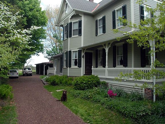 This 1901 Victorian is located in the heart of the Wycombe Village Historic District, listed on the National Register of Historic Places. Built to last in an old-world style with a stone foundation and large beams, this distinctive home features original chestnut woodwork and pocket doors, real plaster walls, high ceilings, and an inviting, shady wraparound porch. From siding and shutters to windows, old glass and interior fixtures, many original features have been retained, and careful improvements have been made in character with this turn-of-the-century house. There are five bedrooms, the fifth has been converted to an office. Outdoors, appreciate the original carriage house barn, dry stone wall, old shade, organic gardens and private sitting areas. With 220’ frontage on a preserved farm, the property offers an expansive feel with big sky views of Buckingham Mountain and captivating sunsets Neighborhood Description Listed on the National Register of Historic Places, Wycombe Village in Bucks County, Pennsylvania, has a very special sense of community - a unique neighborly quality not often found in today's world. The community embraces a common sense of purpose to maintain the historic features and atmosphere for generations to come.