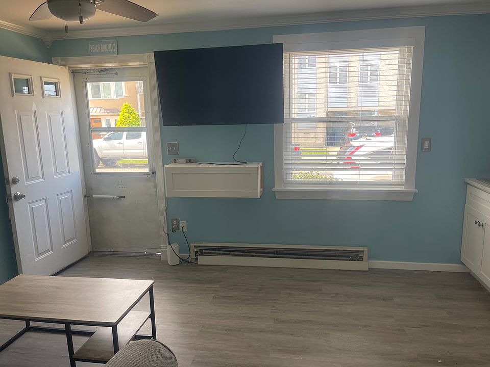 Fully renovated, fully furnished beach block 1 bedroom, 1 bathroom first floor condo available for year lease. New appliances. 1 block from the Brigantine Community center and super close to large shopping center. 10 minute ride to Atlantic City & casinos Laundry on premises Pool & back deck On beach block NJ transit bus runs right down W Brigantine Ave First, last month's rent and $1000 security deposit required. Only includes water/ no other utilities included. Credit and background check required along with 2 references Dogs allowed 50lbs or less- with a $50 pet deposit. Small dogs allowed No smoking Credit check required along with 2 references Security deposit & first & last months rent required