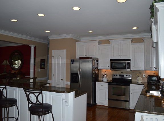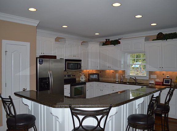 Beautifully landscaped, custom built home! Open floor plan w/large kitchen with granite countertops, bar seating, custom cabinets, tile backsplash & under counter lighting. Dream bonus with full bath & kitchenette area! Hardwoods in GR, DR, foyer & kitchen, oversized garage, lots of attic storage, oversized shower in master bath w/dual shower heads,pocket doors, laundry room w/freezer, and more!