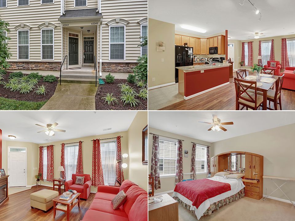 Move-In Ready! 2 level townhome style condominium with garage Main Level Hardwood Floors, Light & Bright Living Room and Dining Room open to the Kitchen w/Breakfast Bar * Ideal Kitchen with Granite Counters, Backsplash and Pantry * Upper Level features a Spacious Family Room with deck/balcony access * Master suite with walk in closet and master bathroom with double vanities * All Bedrooms feature lighted ceiling fans * Bedroom Level Laundry with front loading full size washer & dryer * 1-Car Garage * Parking for 3 Cars (Garage, Driveway & 1 Full-Time Visitor Pass) * Enjoy the Terrific Stone Ridge Amenities! Walking distance to Gum Spring library, shopping & restaurants, Commute park & ride, trail, close to Dulles South Recreation Center, Stone Springs hospital, Dulles airport. Easy access to Route 50 and Route 28.