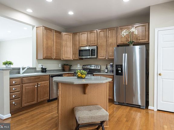 North facing one car garage TH backing to trees for privacy. Over 2,400 finished sq. ft, bright and sun filled 3 bedrooms and 2.5 baths. Main floor kitchen w/ upgraded cabinets and counters, HW Floors, Island and SS Appliances. Full rear extension and deck. Living Room w/ bay window. Spacious owner's suite w/ walk in closet and master bath w/ soaking tub and separate shower. Fully finished recreation room on lower level w/ walk out to open back yard. Extra Street parking in front of home. Walk to pool, tot lot. Newer HVAC.