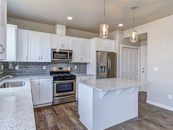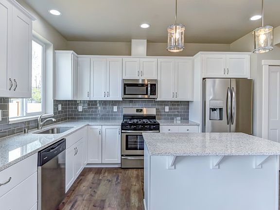 Beautiful NEW Construction Home! 2381 sq ft includes 5 bedrooms, 2.75 baths, eat in kitchen with island and pantry, formal dining room, main floor family room with stone gas fireplace, vaulted ceiling master bedroom with walk in closet, master bath with double vanity and soaking tub, upstairs laundry, 3 car garage with additional RV parking, fully fenced back/side yard with patio, tankless water heater. Custom cabinets, granite counter tops throughout, stainless steal appliances, laminate main floor, tile bathrooms and new carpet upstairs and in bedrooms. Beautiful landscape.
