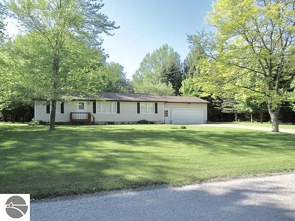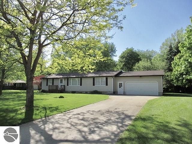 Nice ranch home on a huge ¾ acre lot in Cadillac West! This three-bedroom, two bath house has an open concept layout with 1,400 square feet of living space on the main floor and an unfinished basement (great for storage or workout area). Split floor plan with the master suite on one side and other two bedrooms and bath on the opposite side. Vaulted ceilings, eat-in kitchen island, main floor laundry, and a sliding door off the dining room that opens onto a big 16x20 deck that overlooks a beautifully landscaped private yard with irrigation. A two-car attached garage and an additional 24x32 heated garage give you tons of space for vehicles and toys. There is also a garden shed for more storage. This house is available for immediate occupancy and is move-in ready; all appliances are included. Bring your own finishing touches and make it home!