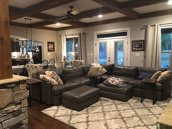 Welcome to the 19th hole! This beautiful custom home situated on a large corner lot features views of the 18th green, 12th box, and fairways. Featuring an open floor plan with gorgeous cedar beams, stone accents, sweeping porches, fire pit, 16x40 fiberglass in ground pool and fenced in backyard…this home is the perfect 4 bedroom, 4 bath home for a family, a couple who enjoys entertaining, or a golfer who wants to have the driving range within walking distance. Surprising private with circular drive, four full size garage bays and two additional parking pads. Large bonus room for kids or man cave, large utility room with sink, cabinets, countertops, and space for second fridge. Kitchen boasts an island the size of a pick up truck with easy close cabinets doors and drawers. Master bedroom with private porch over looking the pool, spacious garden tub, huge walk in shower with rainhead and handheld sprayer, and walk in closet. Two additional rooms with en-suite bathrooms and a third extra “space with barn door, closet, attached bathroom, and French door front porch access. Space could be a bedroom or workspace if needed. There is a home office as well. House will be shown by appointment only, please be ready to provide pre qualification letter. Interested realtors who book appointments should ensure potential buyers are prequalified and agree to flat rate of $15000 commission at closing.