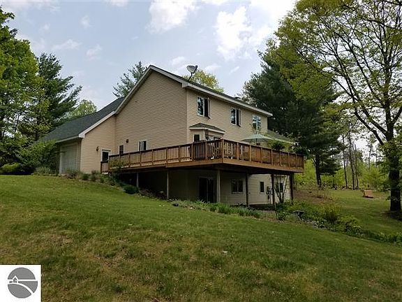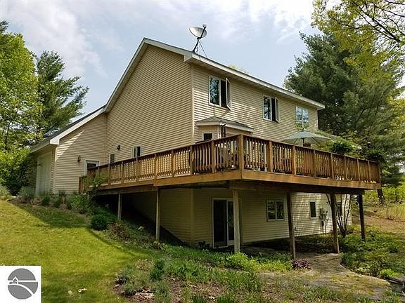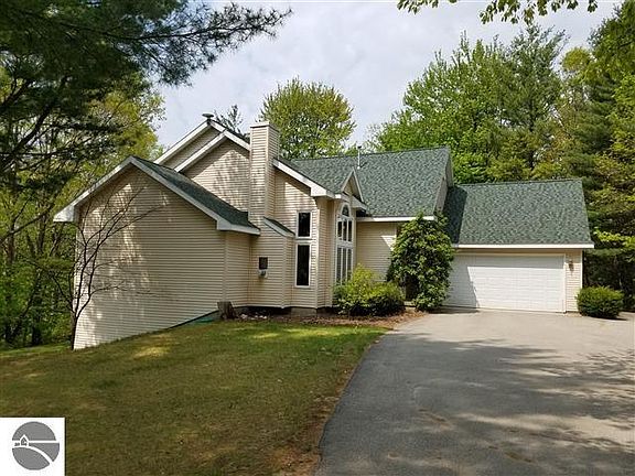 Well maintained, spacious home in highly desired West side of Traverse City just down the road from Cedar Creek Natural Area & Cedar Lake. This 3565' two-story home offers plenty of room for everyone, with 4 bedrooms and 3.5 bathrooms on a walk-out basement. Main floor features include master suite with walk-in closet and jetted tub, hardwood floors throughout, cathedral ceilings, gas fireplace and laundry room. Upper level includes 2 bedrooms, a den with a built-in bookcase and a full bath. The lower level space is perfect for hosting your out of town guests this summer! It features a large family room, with pool table included, a bedroom with walk-in closet, 3/4 bath and a sitting area with a built-in playhouse. The exterior offers extensive landscaping with lots of room to roam on the 5 acres and space for all your toys with a 3 car attached garage. The home has a new roof and owner owned water softener in 2016, geo-therm heat pump with A/C and a large wrap around back deck overlooking mixed hardwoods. This is a wonderful family home priced to sell at $364,900.