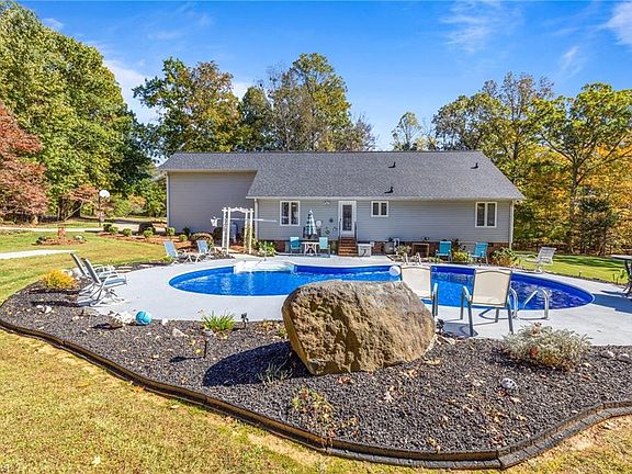 WOW!! Must see this beautiful gem tucked away on over 8 acres with an in ground salt water pool! This home has so many extras. NEW ROOF 2022 on house and building along with gutter guards installed. 2023 new liner and pump for pool. All new water lines put in 2020 converted to pex. Big renovations done in 2018 - New kitchen upgrade - Quartz countertops, tile backsplash, new cabinets, new appliances, new fixtures. House also completely painted, popcorn ceilings removed, new LVP flooring installed, new crown molding and fixtures. This house also has 2 detached garage buildings! One a 24x24 wired building and one a 30x40. This home is a must see, schedule your showing today before its too late!