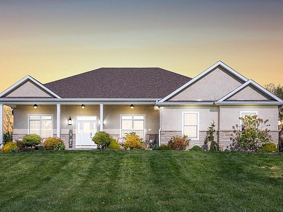 Welcome to your private retreat blending luxury and comfort! Sprawling custom-built ranch has 5 BR, 4 BA, on 5 acres w/ additional 5 acres available. Modern & spacious, this 5,846 sq. ft. home has upgraded fixtures, elegant crown molding, hardwood floors, newer carpet, Pella windows, multi-zone heating/cooling, & water filtration system. A nature lover's dream, cozy, perfect for entertainment while very convenient. Just minutes to highly rated Bloom-Carroll Schools & shopping, or an easy commute to Columbus. Charming foyer opens to dining area w/ coffered ceiling, & home office or living rm w/ scenic pond view. Gourmet kitchen has abundant cabinet space, granite countertops, ss appliances, & eat-in area overlooking expansive great rm gas fireplace & amazing backyard views. Primary suite w/ cathedral ceiling, sliding doors to private deck, sizeable primary bathroom, dual-head tiled shower, & granite countertops. Main floor also includes 3 additional large bedrooms, 2 full bathrooms w/ granite, & generous sized laundry rm. Functional and fun, this huge, finished, multi-use lower-level w/ walkout, built-in bar/kitchen area, bedroom, full bath, also has separate ample storage areas. Stone & Hardie Plank siding, 3-car garage w/ hot/cold water, & 30'x40' pole barn w/ electric. Enjoy beauty and serenity from every angle with gorgeous low-maintenance landscaping all around home, covered front porch, large rear composite deck w/ gas hook-up, & concrete patio off basement doors. Relish the tranquility w/ stunning sunrises, sunsets, privacy, woods w/ trails, fruit trees, & treated, stocked pond w/ fountain for fishing & swimming. Endless opportunities await you at this remarkable, well-maintained home, where you can create your own sanctuary. An additional 5-acre parcel adjacent to the main property is also available for purchase.