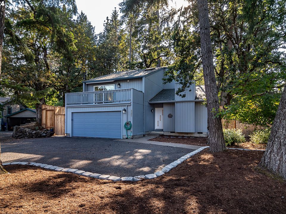 Stellar SE Eugene Location! This tucked-in 3 bed, 2 bath split-level is nestled in a peaceful, treed setting and offers a cozy fireplace, deck off the primary suite, living, dining and family room space, vaulted ceilings and great natural light. Sip coffee on one of three decks while enjoying the easy, natural landsaping and new cedar privacy fencing. Pride of ownership and care are evident. Upgrades include newer roof and heat pump, new life-proof vinyl plank flooring, all new exterior paint and brand new decking. Close-in to walking trails, University of Oregon, great restaurants and the best schools. Minutes off of I-5. Home amenities list available. *Pictures taken prior to most recent updates. New pictures coming soon.*