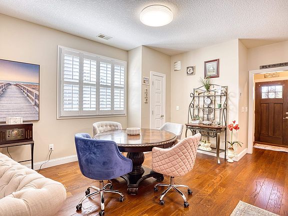 • Window Treatments, Bedroom on Main Level, Entrance Foyer, Kitchen Island, Stainless Steel Appliances, Solid Surface Counters