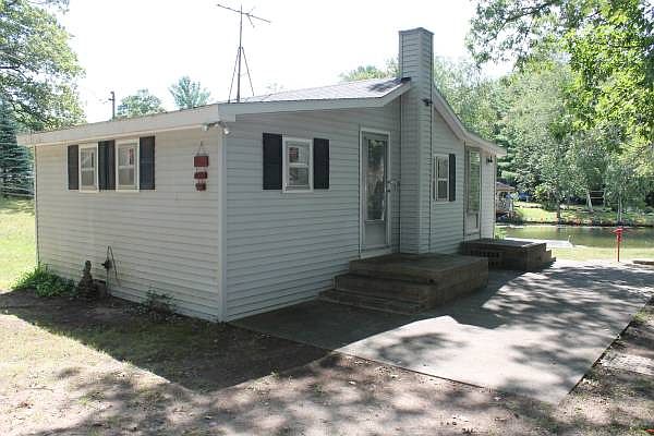 The property is located on a channel leading into five sizable lakes Shanty, Sand, Haven, Townline, and just five miles east of Harrison, Michigan. This is a year round home/cottage, finished in knotty pine paneling and meticulously maintained. The flooring is linoleum. The cottage is 800 sq ft and can sleep 8-9 people by using the two bedrooms, two sofa beds, and a cot for the 9th person. Bedrooms are 8 1/2 x 9 and 8x9 ft and have full size beds, dressers, and built in closets The bathroom has a large built-in cabinet, a sizable bath tub and a sink with cabinet. There is a nice storage area at the end of the bathtub and one in the hallway for storage. Kitchen/dining room combo and living room. All with a great view of the water. The cottage has a furnace underneath the cottage in a large crawl space for year-round living and is heated by propane fuel. The fuel tank is owned by the owner and does not have to be leased from the fuel company. Exterior is vinyl siding and both entrance doors have jalousie windows. The price includes some furnishings. Beds, couches, various chairs, miscellaneous dishes, stove, refrigerator. (No dishwasher or disposal.) Also, miscellaneous hardware supplies in storage shed. Shed is 10x12 approx. The property measures 75.8 ft. wide on the water and 198.3 ft from shore to road. Plenty of room to add a garage or addition onto cottage. There is a sandy beach ~1/8 mile west and a boat launch approximately one mile east of the property. There is trash pickup each Tuesday and the trash company provides a large trash container. There is a pontoon boat with a 35 hp motor for sale and is stored on the property. Cottage $75,000 or best offer Pontoon $3,000 Email for more information, Serious inquiries only. Brokers Welcome