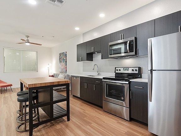- Exterior features: 8-Foot Entry Door, 9-Foot Ceilings Throughout Entire Home, Amazon Parcel Lockers, Availability 24 Hours, BUILT IN DESK WITH SHELVING IN STUDIO/1-BEDROOM, Barbecue, Bicycle storage, COX SMART CONNECT FOR CABLE/INTERNET, Cable not included in rent, DEEP STAINLESS STEEL KITCHEN SINK, Electricity not included in rent, Flexible Lease, Flooring: Softwood, Garbage not included in rent, Garden, Heating: Electric, High-speed Internet Ready, Internet not included in rent, Keyless Entry, Large Low-E Windows at Entry, Living Room, and Bedrooms, Night Patrol, OUTDOOR FITNESS EQUIPMENT, One Year Lease, Online Maintenance Portal, Online Rent Payment, Parking is first come first serve for residents and their guests., Pet Park, Picnic Area, RICH DARK WOOD CABINETS - EUROPEAN WOOD-STYLE WITH STAINLESS HANDLES, Sewage not included in rent, Six Month Lease, Smoking allowed, Spanish Speaking Staff, Stainless Steel Appliances, View Type: City, View Type: Mountain, Water not included in rent