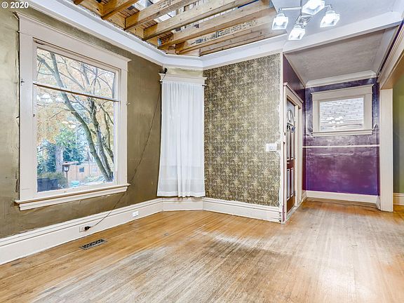 Super location 1 block to Historic Mississippi Ave, North Portland's red hot neighborhood. Bright and Sunny and loaded with charm. This house needs rehab & finishing but has great bones with glass tile, concrete & stainless steel countertops and modernized bathrooms. The 2nd floor was in the process of being transformed into a large master suite, office area w/skylights and tons of storage. Fenced yard w/large detached workshop and back alley access. Full unfinished basement w/ high ceilings.