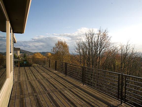 Open layout on two levels. Upstairs vaulted ceilings with expansive western views from living room, kitchen and master bedroom. Downstairs two more bedrooms each with its own bath plus den and kitchenette. The best part is the location. The house is situated on a lot overlooking forestland. One of only a very few houses in the area with spectacular views and a flat yard. The layout makes it a nice fit for families with kids, empty nesters who want to downsize but still have room for when family and friends visit or someone wanting multi generation living. Renter is responsible for gas, electricity and water. Owner pays for garbage service and homeowner association fees.