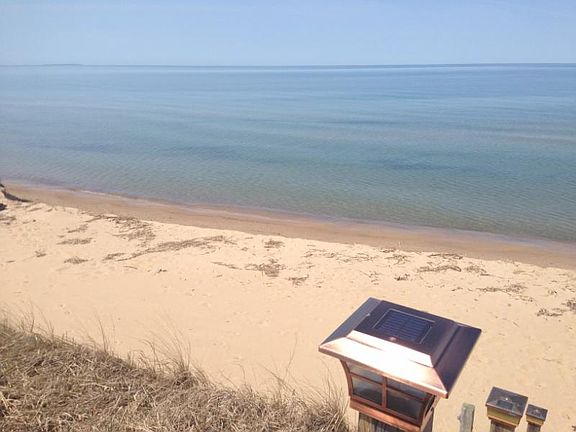Spectacular Lake Views and Sunsets with an Amazing Front cement Patio on front of home..Lake Access is just footsteps away towards Caseville, Beautiful Kitchen with Granite Counter Tops, Dining Area, Year Around Heated Sun Porch, Spacious Great Room with Brick Fireplace, Hardwood Floors, 3 Bedrooms, Brand New Full Bath with Ceramic Floor, 1st Floor Laundry, leading to spacious Garage Attached. Brand New Garage Door!!