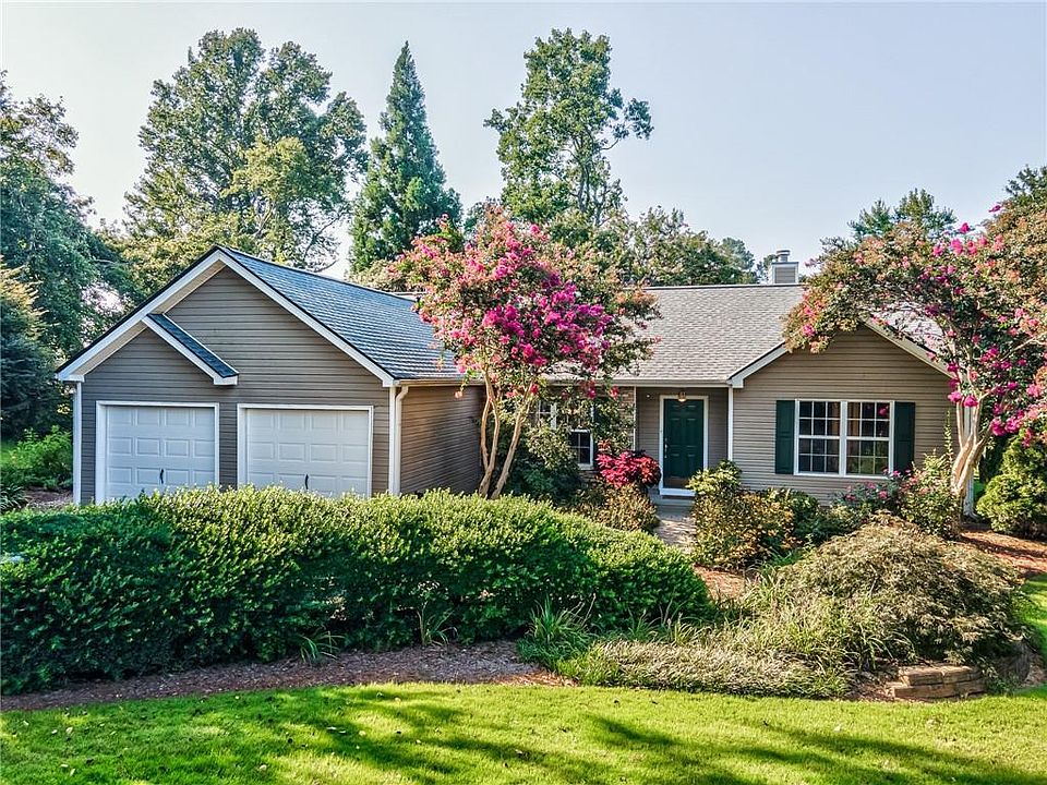 Welcome home to a nice quiet neighborhood with low HOA fees close to shopping and Lake Lanier. 3 bedroom / 2 bath Ranch home with vaulted ceilings. Kitchen is open to family room which boasts triple windows with view to private and landscaped rear yard. Owner installed large paver patio at rear of home. Original owner to home- first time sold to open market! Owner is master gardener and horticulturist so plantings are perennial and thoughtfully placed for optimal beauty and easy to care. Split bedroom plan is perfect for roommate situation. Newer roof, hot water heater, and kitchen faucet, garage doors ( R-19 rating). Attic has been wildlife sealed. New flooring in family room and foyer Nov 2005 and it looks new! New water pressure regulator on hot water heater 2015, New thermostat 2021. HVAC and heating replace 2013 & 2015. Home will be painted inside before it goes active on market. Cumming boasts a new "City Center" nearby that has multiple new restaurants, shopping, putt-putt golf. walking trails and open air amphitheater. New Publix being built close by as well. Not far from Greenway walking trails.