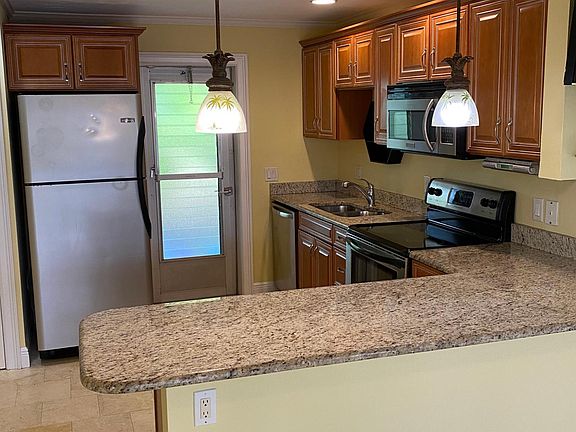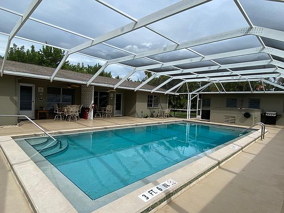 Beautifully refinished single-story unit. There are only 4 units in this complex. 1 building on either side of the pool that contain 2 units each. The units face the sparkling center pool. Each unit has its own patio area. The property is surrounded by tropical garden and lawn. This unit boasts upgraded raised panel cabinets, crown molding, SS stove, microwave, refrigerator and dishwasher, washer/dryer, and a garbage disposal. Travertine tile floors and bathroom shower walls. Granite counters throughout. Beautifully painted and the carpet has just been professionally cleaned. Wood Window blinds cover all windows. Separate locked storage room for storing bicycles and your extras. 2 parking spaces Near downtown Cape Coral and just a few blocks from the beautiful Jaycee Park No HOA application fee 1 yr lease Water fee $100 per month which pays for garbage removal, sewer, and water use. Tenant pays for electricity, internet and cable Owner pays for pool maintenance, grounds maintenance, yardwork and bug spraying inside and around the entire buildings. Rent $1700 due on the 1st. Must make 3x the rent and pass the background check No smoking of any kind on the property. NO Animals Please respond to this ad by leaving a bit of information about yourself and a phone number to contact you. I will return with a call in the evening. Must pass a background check. Not accepting people with prior evictions Renter pays for their electric, Cable and Internet. Renter pays $50 for water/sewer and trash. Owner pays for Gardener, Pool Maintenance, general electricity for the pool area and professional bug spraying inside and out. Move in requires First & Last month's rent, Security Deposit. This is a 6 month lease. There is room for 2 cars that are in good running condition. No animals No smoking of any kind anywhere on the property or growing of any marijuana. DRUG Free environment. Tenants are responsible for all utility expenses (electric, cable/internet) No management company to deal with, deal directly with building owner -Clean background, no prior eviction history -Income 3x monthly rent