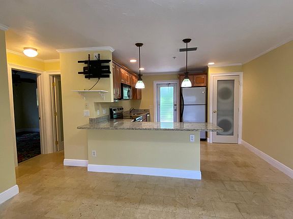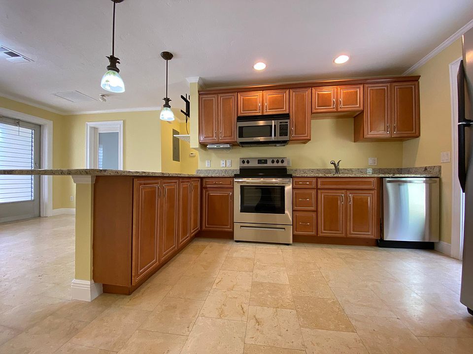 Beautifully refinished single-story unit. There are only 4 units in this complex. 1 Building on either side of the pool that contain 2 units each. The units face the sparkling center pool. Each unit has its own patio area. This unit boasts upgraded raised panel cabinets, crown molding, SS refrigerator, SS dishwasher, SS microwave, Black and SS range, garbage disposal, dishwasher and washer/dryer. Lots of windows to bring in natural light for a cheerful home. Travertine tile floors and shower walls along with granite counters make this place elegant and inviting. Carpets have been professionally cleaned. 2" Window blinds throughout. A separate private locking storage room is provided for bicycles and your extras. 2 parking spaces are provided for this unit. Wonderful peaceful neighborhood off of any main roads. Little to no traffic on this street. It is located near downtown Cape Coral and just blocks away from Jaycee Park, restaurants and shopping. Close to Sanibel and Captiva as well as Fort Myers Beach. Renter pays $50 water/sewer fee. Electricity paid by renter. Owner pays for: pool maintenance, grounds maintenance, gardener and professional pest control spraying inside and out. No smoking of any kind. No animals. No HOA application fee! No felonies or criminal history accepted. 1st, last and security deposit required.