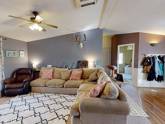 A little farm house flair flows through this home. Nice open floor plan. The family room features a built in wooden entertainment mantle/shelf. The master has a large bathroom with garden tub. Step out onto a covered deck that is perfect for relaxing and entertaining. Along side of the deck is a hot tub. The storage shed remain. The garage is oversized and there is plenty of parking off the side of the garage.
