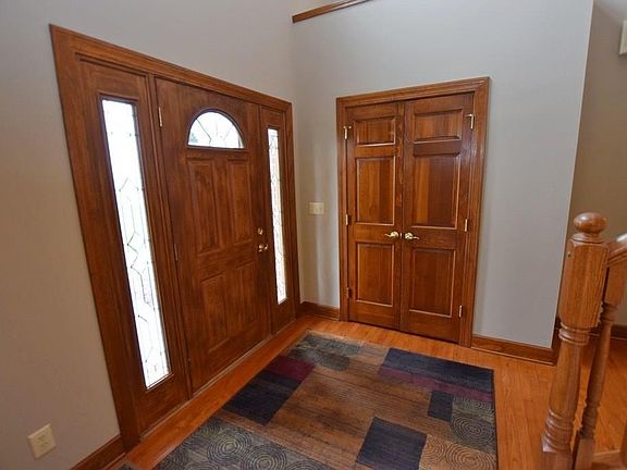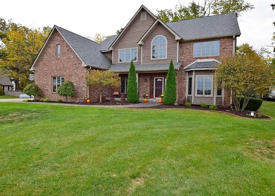 Gorgeous executive style home located on over 1 acre in Pendleton. This huge custom built one owner home is perfect for entertaining large crowds but also cozy for daily living. The main floor features an open and flowing floor plan with the great room open to the kitchen and dining nook. A warm sun room is just off the kitchen and leads to the back stamped concrete patio. Just steps off the kitchen is a formal dining room and following the large foyer you will find an executive office. The basement is a perfect entertainment area with a family room that is open to a rec room and custom built bar. The large master suite upstairs features double walk in closets and a full bath with whirlpool tub and separate shower. Virtual tour has more.