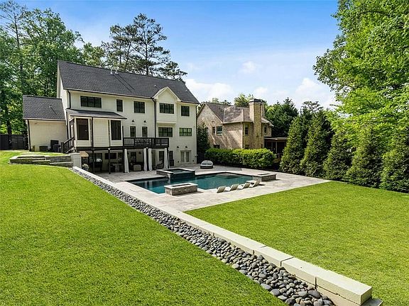 Situated on a level +/-1 acre lot in sought-after Sarah Smith School District, this thoughtfully designed home offers your own private oasis featuring a heated pool and spa with UV and ozone filtration, tanning ledge, and striking water and fire features perfect for year-round enjoyment. Inside, 10-foot ceilings and hardwood floors set a warm tone throughout. The chef’s kitchen is equipped with an oversized island, marble countertops, Viking appliances, and a walk-in pantry, and it opens to a spacious living area and breakfast room. A screened patio with outdoor fireplace and a deck extends the living space outdoors. The main level also includes a separate dining room with wet bar, a home office with French doors, and a guest suite. Upstairs, the primary suite features a marble bathroom with soaking tub, rain shower, double vanities, and an oversized walk-in closet. Three additional bedrooms, a laundry room, and a flexible bonus room round out the upper floor. The finished terrace level is built for entertaining, complete with a home theater, game room with bar, gym, mudroom and an additional bedroom and bath. Outside, an outdoor kitchen with travertine flooring overlooks the pool, surrounded by mature landscaping and a fenced yard. A 3-car garage and whole-house water filtration system add everyday convenience to this Buckhead home.