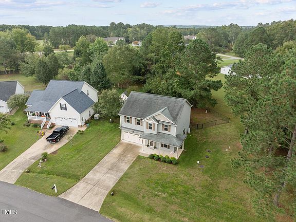Welcome to your new Home Sweet Home! This beautiful 3-bedroom, 2.5-bathroom residence is perfectly situated on a spacious A½ acre lot. As you step inside, you'll find a convenient downstairs office with elegant French doors, ideal for remote work. The large living room features an inviting gas fireplace and seamlessly flows into the open floor plan, creating the perfect space for gatherings and entertaining. The kitchen boasts stainless steel appliances, a spacious walk-in pantry, and ample counter space. Recently updated with fresh paint throughout, this home also offers beautiful LVP flooring downstairs and professionally cleaned carpets upstairs. Retreat to the spacious second-floor primary suite, which includes an ensuite full bathroom and a generous walk-in closet. The secondary bedrooms are impressively sized and one even features a cozy bonus space, perfect for a play area or reading nook! Step outside to your outdoor oasis, featuring a new extended covered patio complete with a ceiling fan and TV—ideal for entertaining or relaxing! The fenced backyard is complemented by a spacious side yard that includes a swingset and play area, making it perfect for kids and pets. The 2 car garage features convenient built-in shelving! With no HOA, you can enjoy the freedom of homeownership without restrictions. Conveniently located near all that Raleigh has to offer, yet provides a sense of peaceful seclusion. This home is truly a gem, combining modern updates with a charming and functional layout! Don't miss this opportunity to make it yours today!