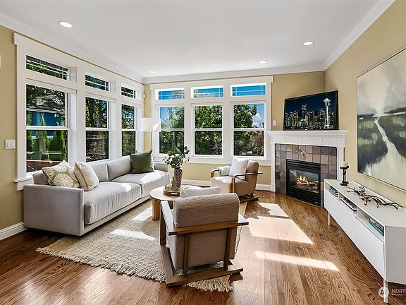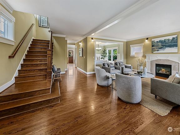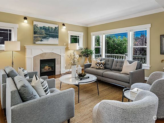 Proud to present this custom built 2004 Craftsman home in the heart of Wallingford. High quality materials, grand spaces & a fantastic layout! Main level includes a beautiful living room w/ gas fireplace, formal dining room w/ box beam ceilings, an entertainer's kitchen open to the family room fw/access to Trex deck w/ awning & fully-fenced level private yard. Upstairs find a luxurious primary suite w/ views of the city & Mt Rainier, fireplace, walk-in closet & 5 piece spa-like bath. Two more generous-sized bdrms, full bath & utility room complete the top floor. Fully finished lower level w/ 2 bdrms, full bath & rec area. A/C + great updated systems. Attached garage. Excellent location (UW, SLU, Downtown, parks & shopping). This has it all!