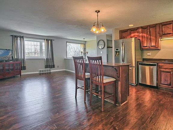 Come see the open floor plan in this split entry home in West Deer. New carpeting throughout and new laminate flooring in the main living areas. Master suite with adjoining powder room. Open Kitchen with island and stainless steel appliances. Large finished gameroom will be perfect for entertaining. Nice additional room off the kitchen area for office or playroom. One car integral garage and an over sized detached garage, plus loads of parking. Spacious covered back porch and fenced back yard with lovely rock landscaping.