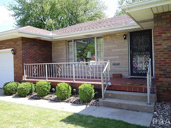 BRICK BEAUTY! Charming 2-4BR/2BA brick ranch with finished basement. Pocket door off kitchen into convenient main floor laundry room with utility sink & tiled shower. New shingles 2008. Newer replacement windows on main floor except in living room. Fully applianced including washer & dryer. Kitchen features tile floor & backsplash. Dining area has built-in china cabinet. Hardwood floors in main floor bedrooms. Huge finished lower level with built-in wet bar, den & guest bedroom. New furnace 2014. Cute yard with zoysia grass, 12x10 patio & koi pond. Attached garage with pull down stairs to floored attic. Home sold as is but includes premium home warranty!