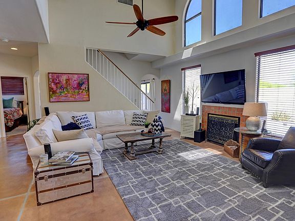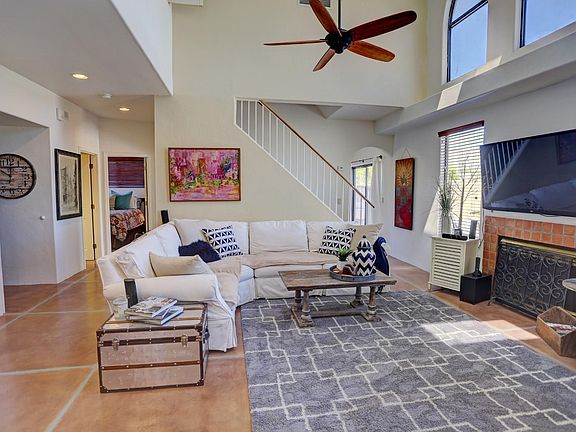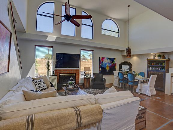 Stunning, complete, ''over the top'' remodel in excellent River/Campbell location! The best lot, beautiful plantings, and biggest driveway in the ''River at North Campbell'' community. Private access to the River Walk within walking distance to abundant shopping and restaurants! Home features mountain views, large open/bright living spaces, 3 bedroom plus den/possible 4th bedroom, 3 bath, soaring ceilings, ceiling fans, gas fireplace, and large back patio/yard. All NEW exquisite concrete overlay floors, painted interior & exterior, and carpet. Kitchen remodel with gas stove. Master Bath remodel with large shower, high end fixtures, and walk-in-closet. NEW plex plumbing throughout house/NO POLY! Fantastic community with gorgeous pool. This is lifestyle/easy living at it's finest! Come see!