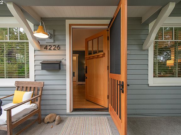 Charming Craftsman Bungalow w/Enchanting backyard. Classic front porch overlooking treelined Laurelhurst St sets the stage. Enter into a spacious living & formal dining rm w/frplc & Oak flrs. Main flr features a bedrm w/Dbl Closets, updated bath, a sweet eat/sitting nook, updated Kitch w/soapstone C-tops & big windws looking out to lush bkyrd & patio. Upstairs to 2 bedrms w/loads of closet space. Basment has tons of poten; currently fam rm, laundry & storage. Plus home has A/C & a 1-Car Garage! [Home Energy Score = 2. HES Report at https://rpt.greenbuildingregistry.com/hes/OR10205843]