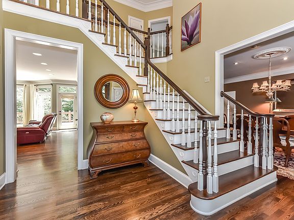 Step into this beautiful custom home that is both warm and elegant. The impressive glass paned double front doors open to rich crown moldings, a winding staircase, and artistic chandeliers. Continue to the heart of the home, the family room and kitchen, with large windows that overlook almost an acre private back yard, a perfect setting to add your own pool. Enjoy morning coffee, or evening wine from your deck or patio. Kitchen has tons of cabinets and counter space, beverage fridge and built-in desk. 2nd floor master suite includes a lighted tray ceiling, custom bath cabinetry with hidden refrigerator, separate jetted tub and over-sized shower, walk-in closet with closet system. Both Kitchen and master bath have been remodeled. Basement features a billiard/Rec room with fireplace, bedroom suite, flex room could be an office, theater or wine cellar, and a storage room. New roof 2016, updates to HVAC systems. Too many features to describe. Must see!