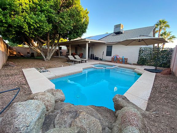 -Electricity is included* -Weekly Pool Service is included -Bi-weekly yard maintenance is included -Dog Friendly -No HOA -All appliances included -Home is currently non-furnished This cozy 3 bed, 2 bath private home located in North Phoenix is tucked away in a quiet, family-friendly neighborhood. This home comes complete with a granite counter top kitchen, heated swimming pool, heated spa, plush mature trees that cover the backyard, nest thermostat, ring doorbell/floodlight camera and so much more. The pool and spa are surfaced with pebbletec and come equipped with a removable mesh pool fence. The pool pump and heater were recently replaced with Pentair's quietest technology and set up with automation so the pool/spa heat and all functions can be controlled from a remote or app on your phone. Located: .2 miles to Desert Sage Elementary School .7 miles to Six Flag's Hurricane Harbor 1.4 miles to Thunderbird Mountain 3 miles from the Shops at Norterra *Limitations may apply. Landlord will provide further details. Requirements: Screening, background check, and signed lease agreement required. Security deposit and first month rent due 48 hours prior to move in. Dogs allowed. No cats. Proof of rental insurance required.