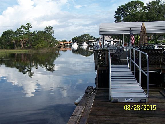 Custom Brick Home painstaking maintained and gorgeously landscaped on natural waterway 200 yards to the the intracoastal waterway. Too many upgrades and details to list all. ''Fish, shrimp, flounder gig, boogeyboard, kayak, windsurf, jet-ski or ride to restaurants by boat for lunch or dinner''. Fish off your dock day or night under your dock lights. Keep your boat on the ''Covered boat lift'' just steps from your back door. Just minutes from Mayo Clinic, Beaches Baptist Hospital, shopping, restaurants, and the Beach and other amenities.