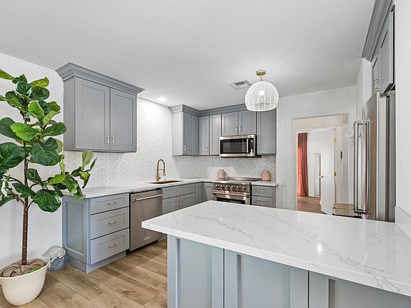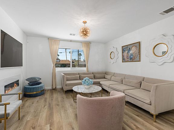 Enjoy modern luxury living in this single-family home that has been completely renovated. Boasting 3 spacious bedrooms and 2 bathrooms across a generous 1,477 square feet, this property is located in a coveted community with a low HOA of only $36/month. Step inside to find a comfortable living room that seamlessly flows into a separate dining area, perfect for hosting intimate dinners or grand gatherings. The heart of the home is the kitchen, equipped with newer stainless steel appliances, sleek quartz countertops, a peninsula with bar seating for casual meals, and a custom tile backsplash that adds a touch of sophistication. The large primary bedroom is a serene retreat, featuring an ensuite bathroom and a 4th bedroom transformed into a luxurious walk-in closet, offering unparalleled space and organization. Luxury vinyl flooring throughout the home looks sleek and is easy to clean. Outside, a new pool and spa with a tanning shelf promise endless summer fun, while the private yard, adorned with palm trees and a covered patio, offers a tranquil setting for al-fresco dining and relaxation. Palm Desert Country Club features an 18-hole, par 72 golf course with double-wide fairways, providing a challenging yet accessible experience for golfers of all skill levels. The club boasts a modern restaurant serving pub-style food and beverages, creating a welcoming environment for dining and entertainment, including live music on selected evenings.