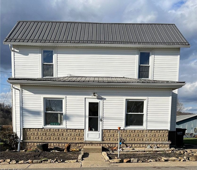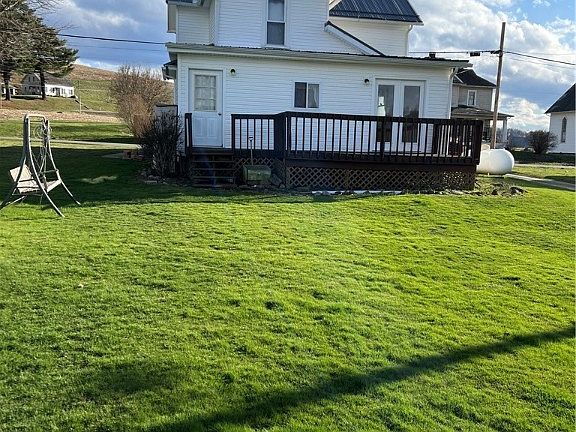 Immaculately preserved, this spacious 2-bedroom, 1-bathroom residence blends comfort and timeless charm. The oversized eat-in kitchen welcomes you with elegant French doors that lead to a deck, perfect for outdoor dining or relaxation. A separate back entrance adds convenience, while a sturdy metal roof, installed in 2016, offers peace of mind. The generous bathroom features ample storage, including a well-appointed linen closet. Nestled in a peaceful setting, the property boasts a screened-in sunroom/porch with electricity—ideal for transforming into a cozy four-season retreat. Additional outdoor space includes a deck for entertaining and a sizable rear parcel, offering plenty of room for expansion. Whether you're envisioning a new garage, garden, or outdoor oasis, the possibilities are endless. This home is a testament to meticulous upkeep and offers a wonderful canvas to bring your vision of the perfect home to life.