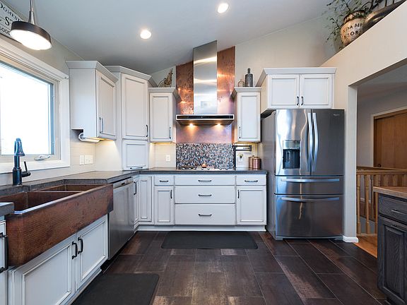 Welcome home to this one of a kind property! Country living in the city with no neighbors. The private 1.61 acre is a must see. The updated open concept living area has a large open floor plan for entertaining with vaulted ceilings and a custom gourmet kitchen. The kitchen is a chef's dream with the custom copper island, concrete countertops, custom cabinetry, heated tile floors, and high end Bertazzoni appliances. The house has a 7 zone SONOS system so you never miss a beat! The main floor features FOUR bedrooms including the master bedroom and 3/4 bath. The main floor full bath has custom concrete countertops, heated tile floors, and tiled shower. This private property is lined with gorgeous trees including apple and plum trees. The backyard has enough space for a large garden, bon fires and an area fenced for a small hobby farm. The walkout basement has an additional bedroom, 3/4 bath, laundry/mud room, and large recreation room. The 2 stall garage has two entrances to the basement and is extra deep. New AC installed in 2019. You won't want to miss seeing this private property inside the city! Call you favorite Realtor today.