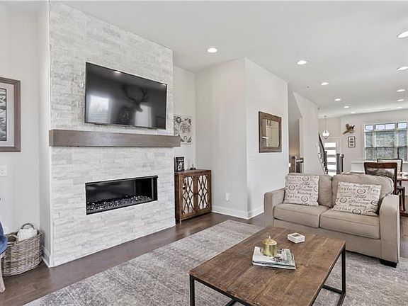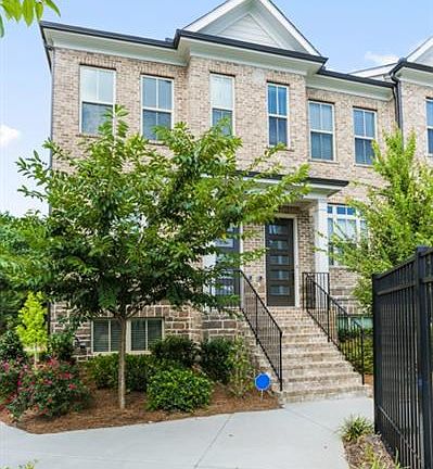 Beautifully appointed, move-in ready end-unit 3 story town home. Windows on 3 sides with dramatic views of Atlanta skyline from the family room, master bedroom, & deck. Two private decks, custom blinds, dual shower heads in master, gas cooktop vented outside, & electric fireplace plus many other upgrades. Lower level offers an extra den/flex space and half bath. The spacious Ballard floorpan offers 2 bedrooms, 2 full baths, & 2 half baths. You are steps away to the inviting pool from your front door. Make this lovely practically brand new unit your new home today!