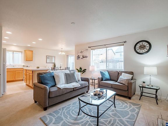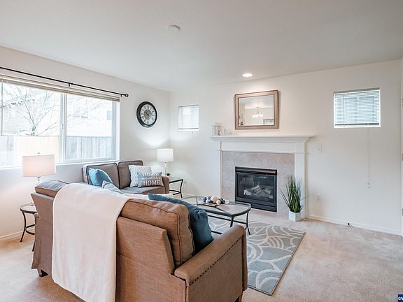 Great home in a great neighborhood close to great schools! Open floor plan, kitchen with large island and ample storage, cozy living room with gas fireplace, sliding door to patio and backyard. Powder room on the main level, huge storage under the stairs. 3 spacious bedrooms with laundry upstairs, primary en suite with large walk-in closet and double vanity. Fully landscaped and fenced with underground irrigation, easy to maintain backyard. Gas forced air heating with AC, 2-car attached garage.