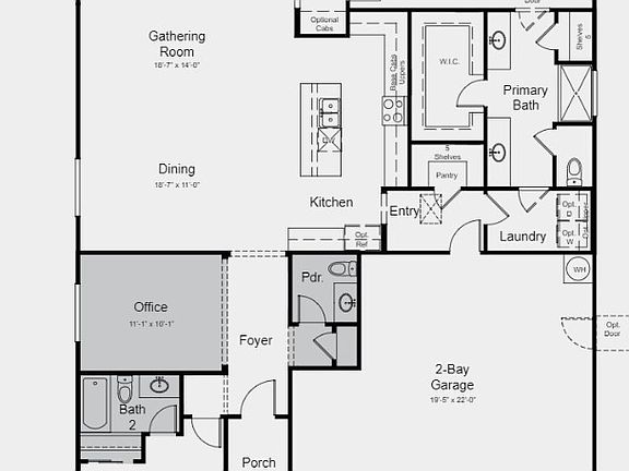 REPRESENTATIVE PHOTOS ADDED. October Completion. Located in 55+ active lifestyle community Ovation at Mountain Falls, the Primrose offers 2 bedrooms, 2.5 baths, office, and a 2-car garage. The generously sized covered outdoor living space has direct access to the open gathering room, dining, and kitchen area. Test your culinary skills in your new chef-inspired kitchen showcasing a large food prep island, walk-in pantry, 42" cabinets, quartz countertops with upgraded backsplash. The primary suite is tucked away at the back of the home for privacy with an oversized walk-in closet and spa-like bath. The secondary bedroom is located at the front of the home - ideal for guests. The Ovation at Mountain Falls community is designed for today’s 55+ home buyers with resort style amenities. Structural options include: 12' center meet sliding glass door. powder room, office and ensuite bathroom.