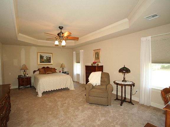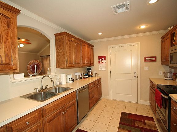 Excellent Prop very neat with all the extras incl Bullnose corners, Safe Room, SS Sin & App., C. Tile Kit, Hall & Baths, Oak Cabinets, Lever Knobs, Open Plan, Custom Drapes & Blinds, Crown Mldg, Railed Front Porch, Gated 55+ Comm. Seller related to L.Agt