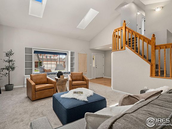 This spacious 2-story in desirable Overlook has been refreshed with new interior paint, carpet, refinished hardwood floors and an updated kitchen with newer countertops, backsplash and some appliances! Great built-ins in living room surround the gas fireplace and the home also features central a/c, unfinished basement & a large yard with patio & sprinkler system. Wonderful green spaces in the neighborhood include a trail under busy Harmony for great access to Johnson Elementary and Webber Middle Schools. This home has been pre-inspected & includes a home warranty.