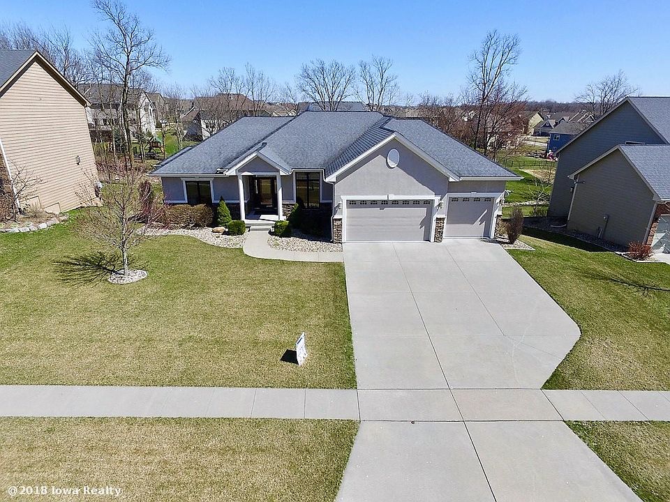 Welcome Home Super spacious walkout ranch in prime location on 1/2 acre park-like setting backyard Attn to detail throughout, over 4100sf, beautiful hrdwd flrs in entry & office french drs & blt-ins. Inviting family rm fireplace. Great kitchen granite, SS appls, breakfast bar, & dining area leads to lrg maint-free deck & fabulous priv bckyrd trees & lndscping. Spacious MBR suite lrg walk-in closet, MBath tile shower, corner jacuzzi, & his & her sinks. Two addtl BRs Jack-&-Jill bath, plus powder rm, & conv main level lndry. Fnshd /walkout LL includes 2nd fam rm, pool table/game area, wet bar, french drs to bonus rm-perfect for exercise, crafts, play area or could be a future theater rm O'szd 4th BR or 2nd master suite lg walk-in clst, 3/4BA, 2nd lndry rm, & storage area. Walkout to patio & park-like bckyrd. 3C gar epoxy flr, radon mitigation system, irrig, lndscping, extensive trim, surround sound, & more. Prime loc, 1/2A mature trees, Waukee schls Move-In Ready