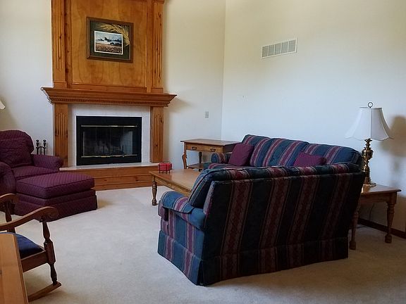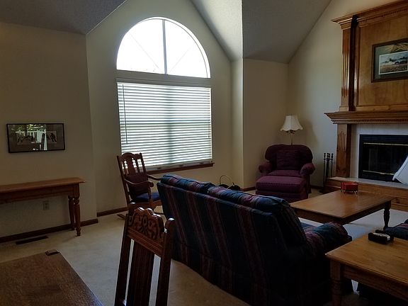 1-1/2 story with finished walk out basement, including family room and office, large master suite with walk in closet, huge vanity, and corner whirlpool tub, vaulted ceilings. Tall wood mantle wood burning fireplace w/ gas starter in living/family room. Newer 1st floor deck overlooks treed lot. Hardwood floor in kitchen/dining area.
