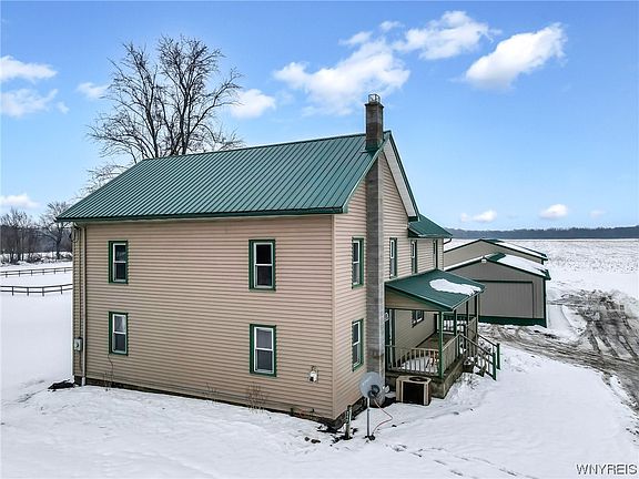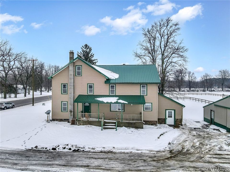 Looking for a large home with land and barns? Here it is! This home is over 2400sq ft with very large rooms. 4 huge bedrooms with a possible 5th, 2 full baths, large kitchen with pantry, and 2 lovely porches to overlook 3.5 acres. Updates include h/w brand new '24, furnace '21, 200 amp electric '15. House has a 4 yr old metal roof, public water, wood stove in basement to off-set heat costs, closets aplenty, 2 staircases, full attic and more. Out back you will find a 24x40 pole barn and a 33x40 pole barn both with metal rooves within 10 years. There is a horse stall, and electric in barn. No delayed negotiations!