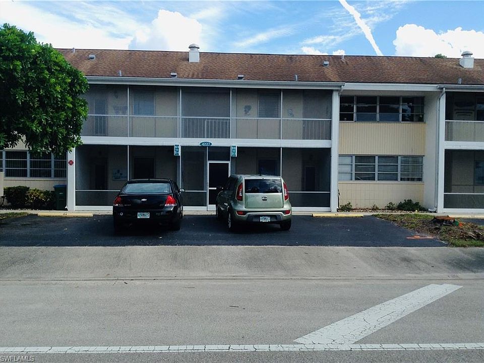 This is a 55 plus condo unit located close to the desirable downtown Cape Coral area. Enjoy this Furnished 1 bedroom 1 bath condo located on the second floor, cathedral ceilings, screened lanai with great park like view, lots of storage, & a walk in closet. Laundry area in each building. The large community pool is just a short stroll away, clubhouse area has a full kitchen and all the amenities you need to entertain i.e. Barbecue grill, shuffle board and billiard. This condo includes a rear courtyard landscaped area to visit your friendly neighbors. *****This is an age restricted over 55 community that allows 90 days max. one time rentals, sorry no pets*****